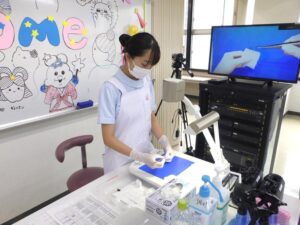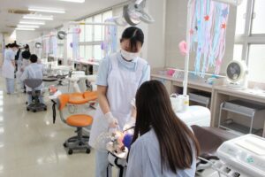 学院生と話しながら様々な歯科衛生士のお仕事体験ができる