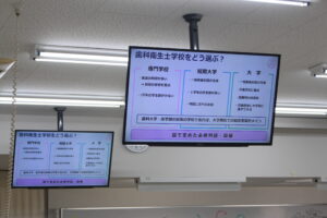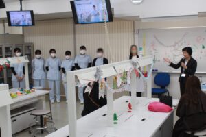まずは本学の教員より、歯科衛生士の仕事内容や在学中の主な実習先紹介、
