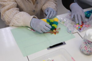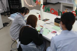 12月のお仕事体験は、歯科用ピンセットを使用してクリスマス用オーナメントの作成。