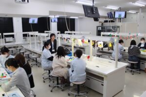 まずは本学の教員より、歯科衛生士の仕事内容や在学中の主な実習先紹介、