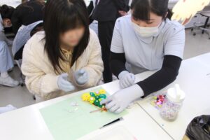 12月のお仕事体験は、歯科用ピンセットを使用してクリスマス用オーナメントの作成。