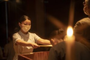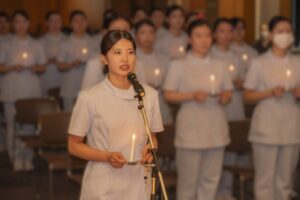 そして蝋燭を手に「歯科衛生士の誓い」を述べました![]()