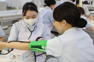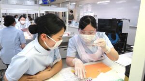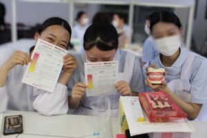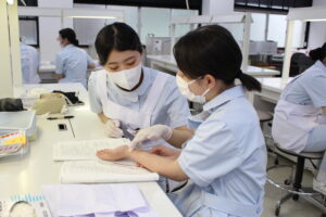 1年生に歯科衛生士業務の一連を教えます。