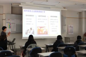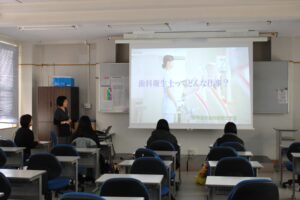 まずは歯科衛生士のお仕事について教務主任から説明させていただきました。