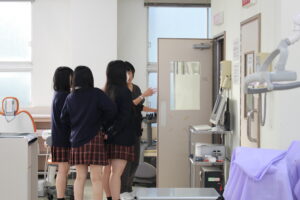 そのあとは本学の実習室の紹介のため、基礎実習室と臨床実習室へ。